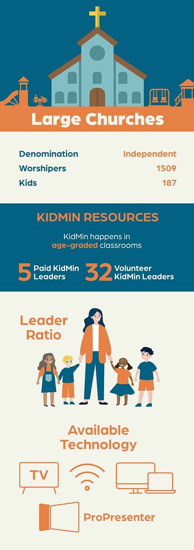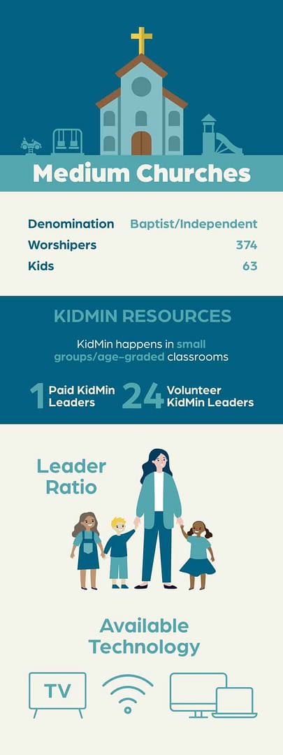 In this survey, we learned more about small, medium, and large churches. Each size of church operates in their own way to teach children.