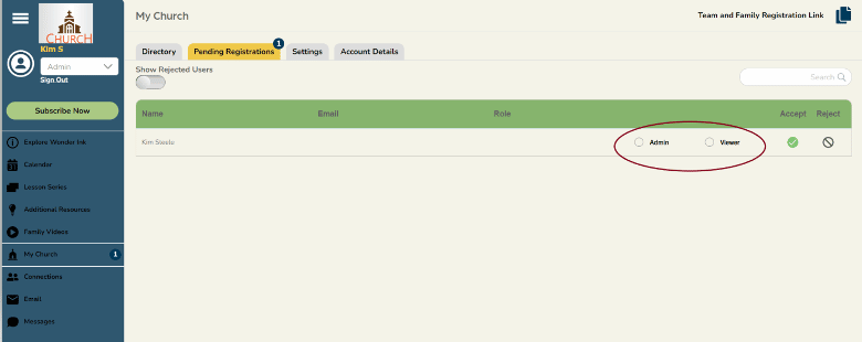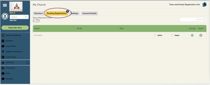 If you have users that need to be accepted and assigned a role, there will be a little number by My Church in the left navigation, and on the Pending Registration tab.